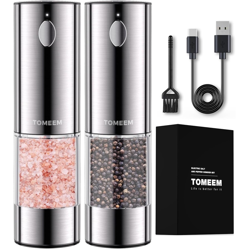 - Rechargeable Design: TOMEEM rechargeable salt and pepper grinder set features a Type-C charging cable for quick and convenient charging. With just one charge, it can be used for daily purposes for approximately a month. Say goodbye to disposable batteries, save money