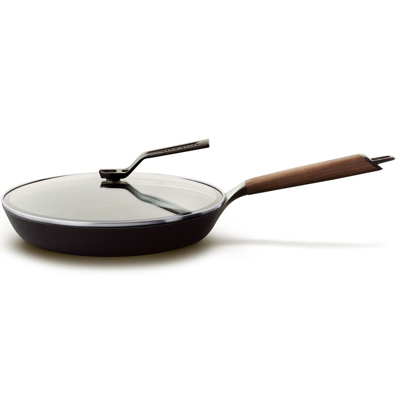 • Material: [Body] Enameled Cast Iron, [Handle] Wood (Walnut or Oak), [Lid] Glass