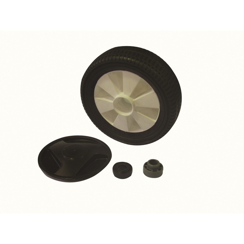 Includes plastic bearing, bushing and hub capVICTA PARTS: CH81418A, CH85510AFits Model - Universal: VariousID9/16" (14.3mm)Wheel Size7" (177.8mm)