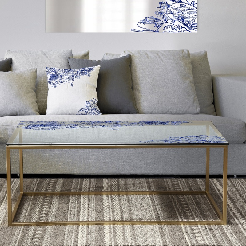 Furnish your traditional home with this Designart coffee table. Inspired by vintage flowers, this metal table with its printed, glass top marries glamour with a farmhouse aura. A sleek goldtone, metal frame and sled legs keep this table sturdy, while its high-density Italian ink print stays vibrant through years of use.