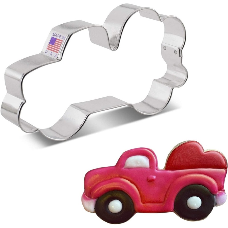 Vintage Truck with Heart Cookie Cutter Size: 5" x 3"Made in the USACertified Safe for Lead and Cadmium. US made tin-plated Steel.Hand wash, not dishwasher safe.