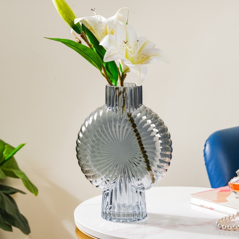The translucent glass vase is a contemporary and sleek piece that brings a modern touch to any room. Its understated design allows it to seamlessly blend with any decor, making it a versatile addition to your home. The vase’s round opening makes it easy to arrange a variety of flowers while the disc-shaped body makes the flower arrangement look unique. When paired with colourful blooms or even minimalist foliage, the glass vase creates a beautiful decorative accent. The glass vase makes it a wonderful accent piece to elevate any space, whether it’s a living room, dining room, or even a home office. The vase is a true testament to the timeless beauty and power of nature, captured in an exquisitely crafted piece of art.