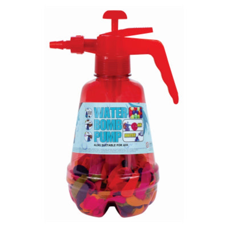 This easy to use water bomb pump comes complete with 300 natural rubber latex balloons. You can either use to just inflate the balloons with air or fill the pump with water to create your own water balloons.NB Not suitable for children under the age of 36