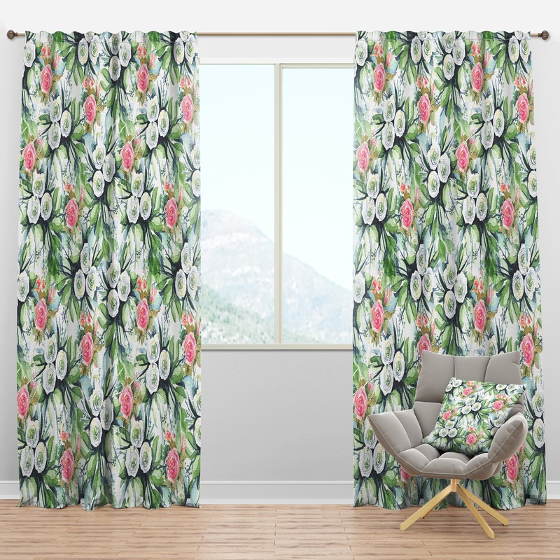 The fabric is composed of 270 gsm polyester faux linen fabric, making this Floral curtain completely machine-washable for easy care. The design is printed using the highest quality eco-friendly fade resistant ink and the delicate stitching entirely hand-sewn by one of our expert seamstresses. These are decorative and not blackout curtains. They have a 50% light filtration rate which will darken the room when closed, but not completely block out the light.