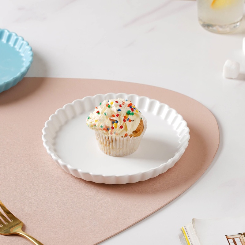 The soothing white snack plate with fluted edges is a simple yet striking ceramic plate that is suitable for any decor space. Serve snacks and cookies at a high-tea party on this ceramic plate. The raised rim creates a stylish aesthetic that lifts the appeal of any tablescape.