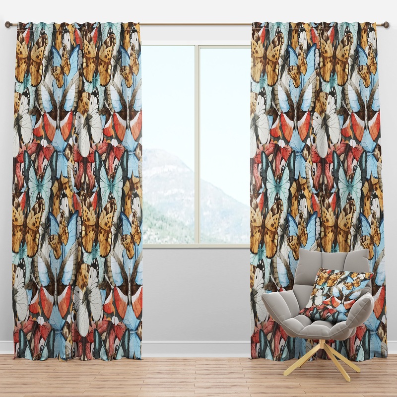 Refresh your living space with this vibrant and lively Designart ‘White, Red and Blue and Brown Butterfly Pattern’ curtain panel. Featuring colorful butterfly imagery printed in high-quality and fade-resistant Italian ink, this decorative semi-sheer curtain helps reduce sun glare while allowing warm natural light to flow through into your home.