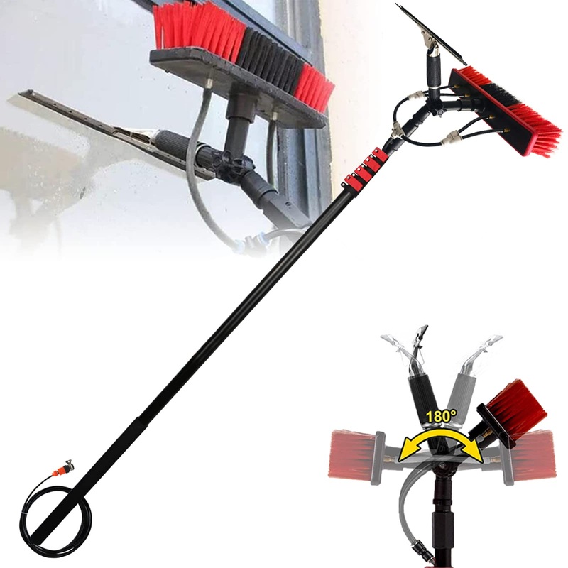 Welcome to shop, thank your presence and trust! You can click on our shop to see more products.We will continue to update to provide customers with quality products. Are you still clumsily climbing ladders to clear tall windows!- With this window cleaning brush, you can get from the ground to your windows faster and safer than ever. Product Specifications- Removable scraper- “Y” angle adapter- Hose fittings- High quality Brush- Flip cam lock device- Comfortable spongy handle- Smooth aluminum pole- 16mm faucet quick connect- Elasticity antifreeze pipe- Material: Aluminum alloy- Size: 12FT(3.6m), 18FT(5.4m), 20FT(6m), 24FT(7.2m), 30FT(9m), 36FT(10.8m)- Scope of use: window cleaning, photovoltaic panel cleaning, bus exterior cleaning, large vehicles, trucks, trucks, caravans, boats, etc. Product Packing- 1 Window Cleaning Pole with Squeegee Note- Because of the light effect and the different computer monitors, there may be the color difference.- Size is manual measurement, there will be 1-2cm error.- If you have any questions, please feel free to contact us and we will reply you email and solve your problem in 24h.If you have any questions, please feel free to contact us and we will reply you email and solve your problem in 24h. Enjoy a smooth squeegee glide. The flexible head makes it easy to clean high-rise windows without walking, making cleaning windows a simple and fun thing to do.Dry off the windows with the squeegee head, perfect for hard water areas where leaving water to dry will leave water spots. High-density reinforced aluminum alloy, the very durable and soft feather bristles ensure a safe and clean surface. The water hose easily meets your needs at any height and is easy to use. Multifunctional Window Wiper has a sprayable head and a glass photovoltaic wiper strip to make cleaning windows faster and cleaner. Great for outdoor and indoor glass surfaces and also as a windshield cleaning tool. use many times. Our custom water supply poles are fun and easy to use, just connect to any standard household water source, turn on the tap and you’re ready to clean your windows, porches, fascias and soffits in no time at all.