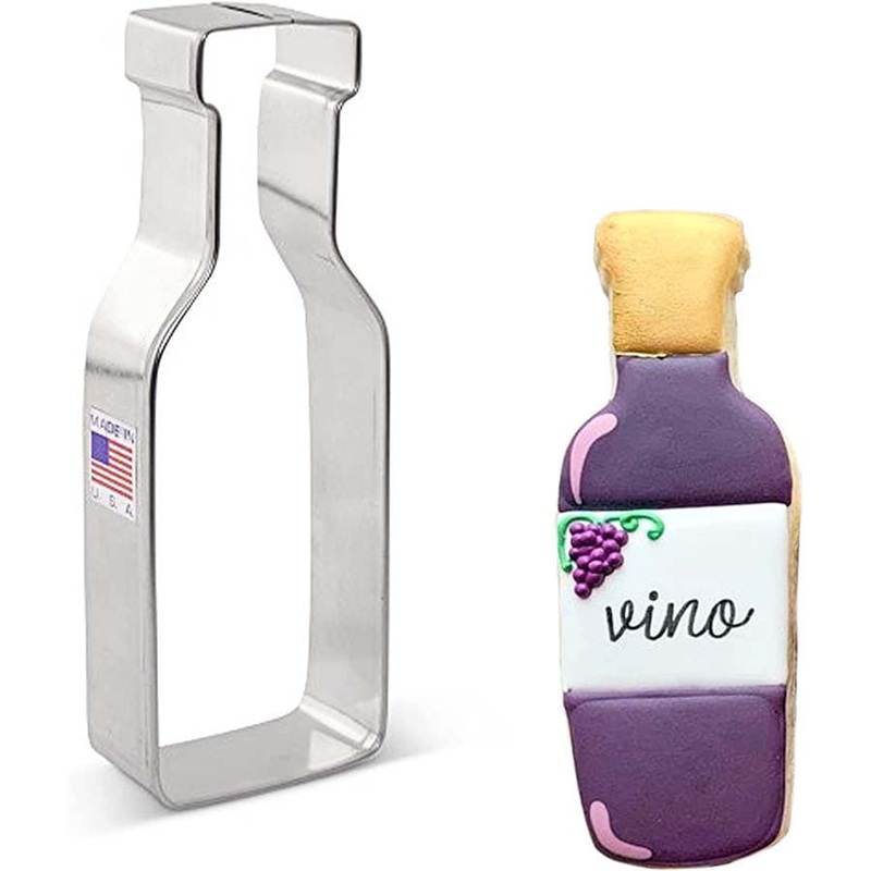 Wine Bottle Cookie CutterSize: 5"Made in the USACertified Safe for Lead and Cadmium. US made tin-plated Steel.Hand wash, not dishwasher safe.Great for cut cookies, soft fruits, sandwiches and crafts.Handy Drying Tip For Preventing RustWash your cookie cutt