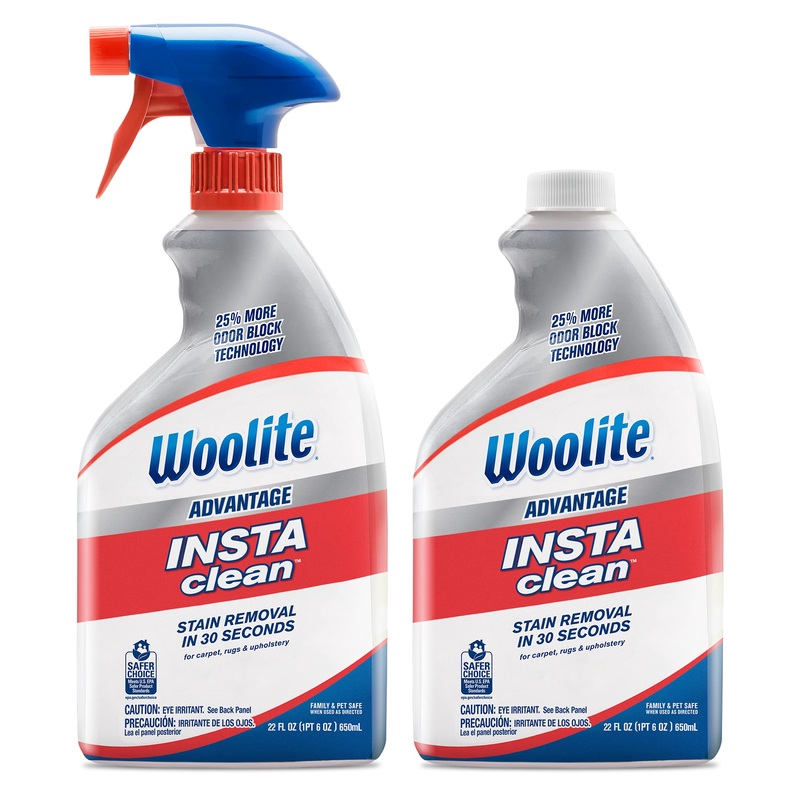 Instant and permanent stain removal is just a spray away with Woolite Advantage INSTAclean Stain Remover. This oxy stain removal formula starts working on contact to mobilize lift and penetrate stains at the source so they disappear in 30 seconds. It works on tough stains like tracked-in dirt and blood. It also works on grass stains tomato sauce red wine fruit juice makeup food grease coffee soda tea motor oil and more. But this formula doesnt just remove stains it eliminates odors too. Its formulated with 25 more odor block technology compared to our original formula. Its also safe for use on soft surfaces including carpet rugs and upholstery and hard surfaces like tile and linoleum. Woolite Advantage INSTAclean Stain Remover is an earth friendly formula with biodegradable detergents and it doesnt contain any heavy metals phosphates or dyes. Its safe to use around kids and pets when used as directed. Plus its a Safer Choice-certified product and has been evaluated by the Environmental Protection Agency (EPA) through a rigorous scientific process to designate products that are safer for families pets workplaces neighborhoods and the environment.