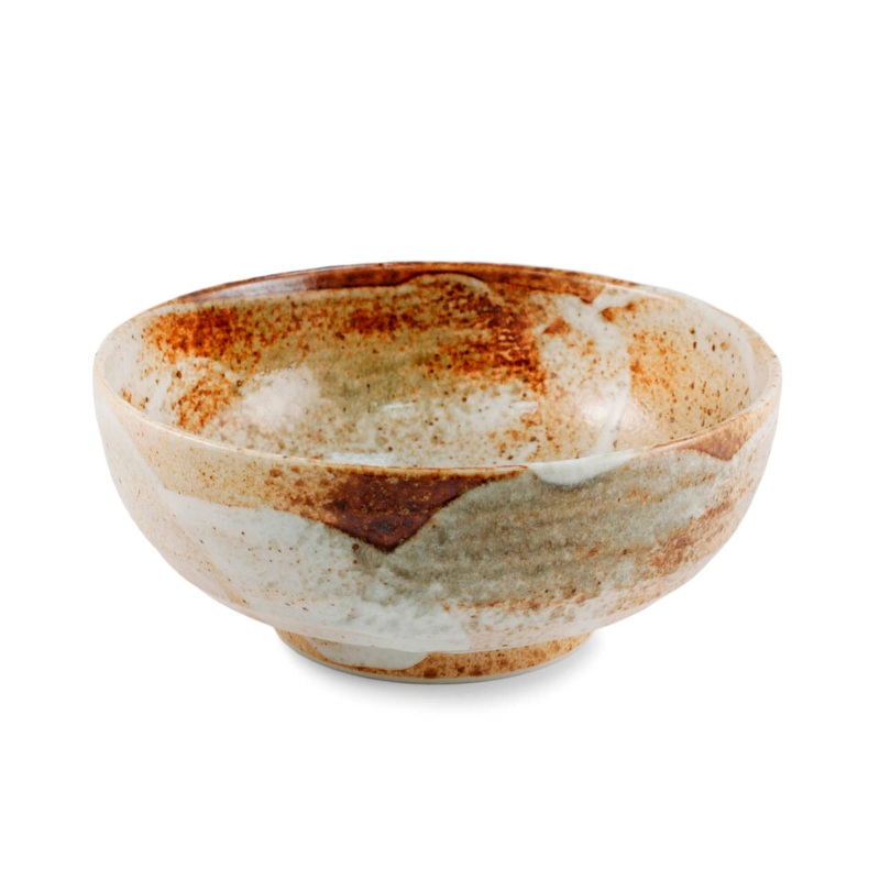 Yukishino ceramics feature a snow-inspired design, achieved through layers of Shino glaze and random strokes of Oribe green glaze. The thick, raised white glaze adds texture and depth, enhancing the bowls rustic yet refined aesthetic. These unique, one-of-a-kind patterns resemble delicate snowflakes, making each piece a functional work of art.