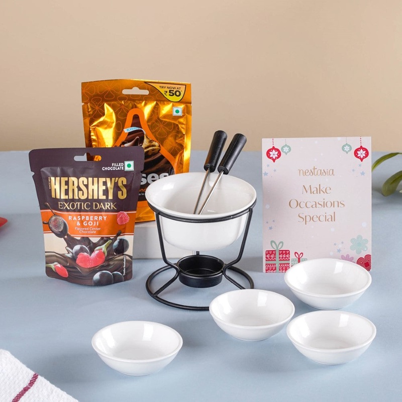 The hamper is absolutely perfect for someone who makes you think "I am so fondue of you". It includes small plates and a cheese fondue pot to make your Christmas eve full of warmth and joy. Enjoy plates full of veggies, crispy crackers, and biscuits, and d