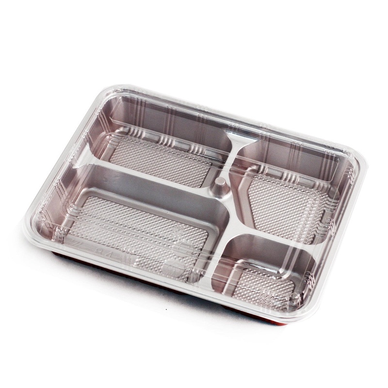 These simple, red bento takeout containers are ideal for an assortment of dishes. Bento boxes generally contain rice in the largest sections, with accompanying appetizers, pickles, and main items.SpecificationsMaterial: Polystyrene (Plastic #6 (PS))BPA-fre