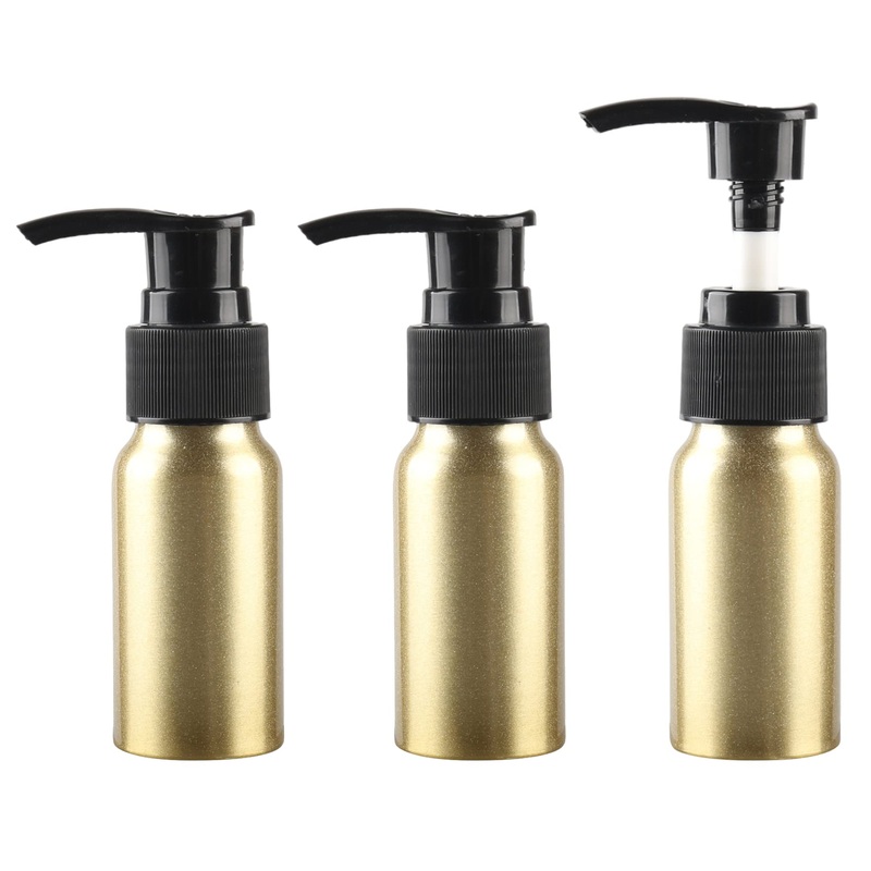 ZEOABSY 3 PiecesEmpty 30ml Gold Aluminium Lotion Pump Bottle Aluminum Bottles with Black Pump Head Travel Metal Bottles for CosmeticShampoo Body Washing Gel Essential Oil Liquid Dispenser